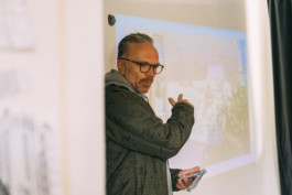 Der Post-Corona-Stadt Spaziergang war während der Testspiele #1 aufgrund heftigen Regenfalls ausgefallen. Dominique Peck holte ihn nun nach. Er berichtete an Ort und Stelle über einige Forschungsdesiderate aus der noch jungen Stadtforschung zum Thema der Coronapandemie und bat die Teilnehmer:innen des Spaziergangs um Reflexion und alternative Einblicke.