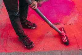 Der Fußweg auf den unterschiedlichen Flächen des Kreuzungsbereiches wurde mit rotem Farbpulver zusammengezogen.